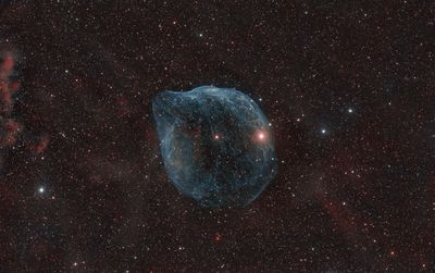 Blown by fast winds from a hot, massive star, this cosmic bubble is huge. Cataloged as Sharpless 2-308 it lies some 5,000 light-years away toward the well-trained constellation Canis Major and...