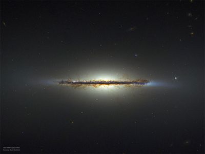 What kind of celestial object is this? A relatively normal galaxy -- but seen from its edge. Many disk galaxies are actually just as thin as NGC 5866, the Spindle galaxy, pictured here, but are...