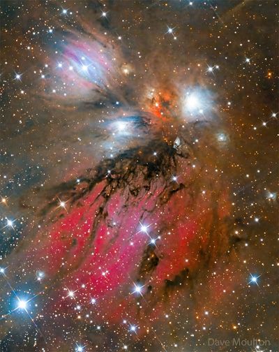Is this a painting or a photograph? In this celestial abstract art composed with a cosmic brush, dusty nebula NGC 2170, also known as the Angel Nebula, shines just above the image center....