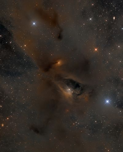 An unassuming region in the constellation Taurus holds these dark and dusty nebulae. Scattered through the scene, stars in multiple star systems are forming within their natal Taurus molecular...
