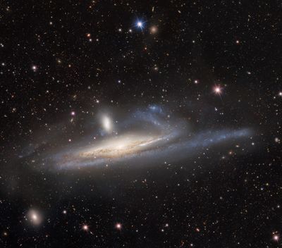 This magnificent spiral galaxy is Messier 64, often called the Black Eye Galaxy or the Sleeping Beauty Galaxy for its dark-lidded appearance in telescopic views. The spiral's central region,...
