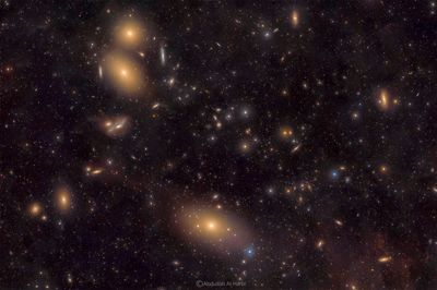Galaxies of the Virgo Cluster are scattered across this nearly 4 degree wide telescopic field of view. About 50 million light-years distant, the Virgo Cluster is the closest large galaxy cluster to...