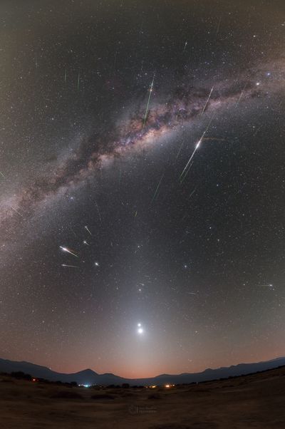 Grains of cosmic dust streaked through night skies in early May. Swept up as planet Earth plowed through the debris streams left behind by periodic Comet Halley, the annual meteor shower is known...
