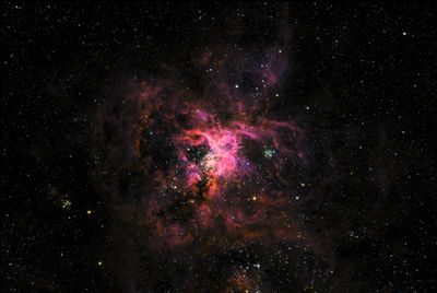 The Tarantula Nebula, also known as 30 Doradus, is more than a thousand light-years in diameter, a giant star forming region within nearby satellite galaxy the Large Magellanic Cloud. About 160...