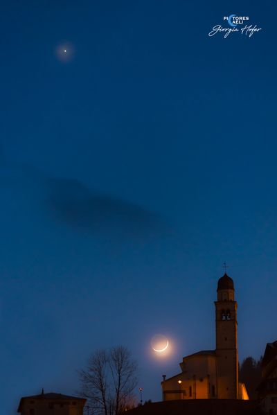 On March 23 early evening skygazers could watch Venus and a young crescent moon, both near the western horizon. On that date Earth's brilliant evening star, faint lunar night side and slender...