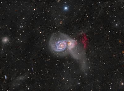 An intriguing pair of interacting galaxies, M51 is the 51st entry in Charles Messier's famous catalog. Perhaps the original spiral nebula, the large galaxy with whirlpool-like spiral structure...