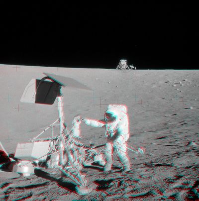 Put on your red/blue glasses and gaze across the western Ocean of Storms on the surface of the Moon. The 3D anaglyph features Apollo 12 astronaut Pete Conrad visiting the Surveyor 3 spacecraft in...