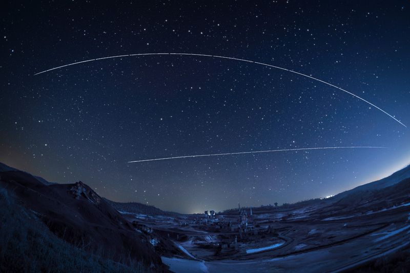 On January 3, two space stations already illuminated by sunlight in low Earth orbit crossed this dark predawn sky. Moving west to east (left to right) across the composited timelapse image China's Tiangong Space Station traced the upper trail captured more than an hour before the local sunrise. Seen against a starry background Tiangong passes just below the inverted Big Dipper asterism of Ursa Major near the peak of its bright arc, and above north pole star Polaris. But less than five minutes before, the International Space Station had traced its own sunlit streak across the dark sky. Its trail begins just above the W-shape outlined by the bright stars of Cassiopeia near the northern horizon. The dramatic foreground spans an abandoned mine at Achada do Gamo in southeastern Portugal.