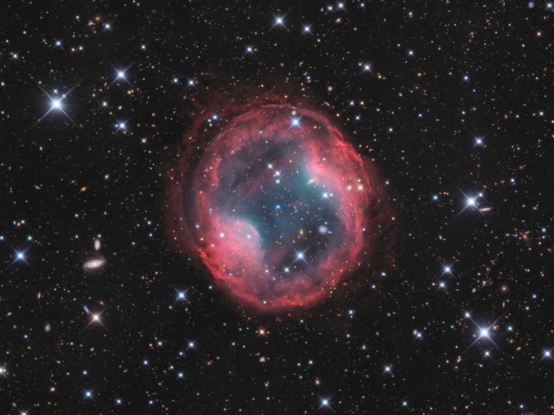 Planetary nebula Jones-Emberson 1 is the death shroud of a dying Sun-like star. It lies some 1,600 light-years from Earth toward the sharp-eyed constellation Lynx. About 4 light-years across, the expanding remnant of the dying star's atmosphere was shrugged off into interstellar space, as the star's central supply of hydrogen and then helium for fusion was finally depleted after billions of years. Visible near the center of the planetary nebula is what remains of the stellar core, a blue-hot white dwarf star. Also known as PK 164 +31.1, the nebula is faint and very difficult to glimpse at a telescope's eyepiece. But this deep broadband image combining 22 hours of exposure time does show it off in exceptional detail. Stars within our own Milky Way galaxy as well as background galaxies across the universe are scattered through the clear field of view. Ephemeral on the cosmic stage, Jones-Emberson 1 will fade away over the next few thousand years. Its hot, central white dwarf star will take billions of years to cool.