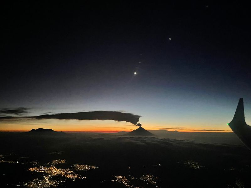 Venus has returned, now appearing in planet Earth's predawn skies as a brilliant morning star. From a window seat on a flight to Mexico City, the bright celestial beacon was captured just before sunrise in this astronomical snapshot, taken on September 12. Venus, at the upper right, shared the early twilight with an old crescent Moon. Seen from this stratospheric perspective, mountain peaks and clouds appear in silhouette along a glowing eastern horizon. The dramatic, long, low cloud bank was created by ongoing venting from planet Earth's active volcano Popocatépetl.