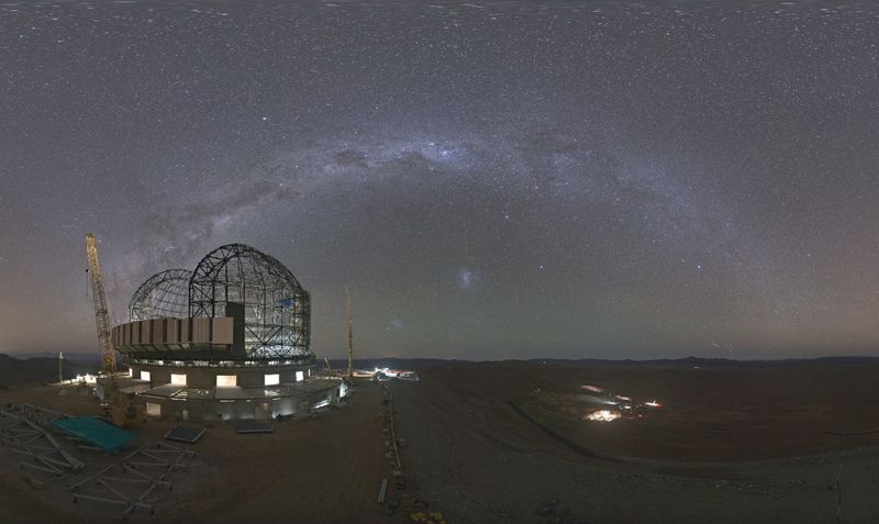 The southern winter Milky Way sprawls across this night skyscape. Looking due south, the webcam view was recorded near local midnight on March 11 in dry, dark skies over the central Chilean Atacama desert. Seen below the graceful arc of diffuse starlight are satellite galaxies of the mighty Milky Way, also known as the Large and Small Magellanic clouds. In the foreground is the site of the European Southern Observatory's 40-metre-class Extremely Large Telescope (ELT). Under construction at the 3000 metre summit of Cerro Armazones, the ELT is on track to become planet Earth's biggest Eye on the Sky.