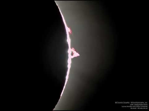 How does a total solar eclipse end? Yes, the Moon moves out from fully blocking the Sun, but in the first few seconds of transition, interesting things appear. The first is called a diamond ring. Light might stream between mountains or through relative lowlands around the Moon's edge, as seen from your location, making this sudden first light, when combined with the corona that surrounds the Moon, look like a diamond ring. Within seconds other light streams appear that are called, collectively, Bailey's beads. In the featured video, it may seem that the pink triangular prominence on the Sun is somehow related to where the Sun begins to reappear, but it is not. Observers from other locations saw Bailey's beads emerge from different places around the Moon, away from the iconic triangular solar prominence visible to all. The video was captured with specialized equipment from New Boston, Texas, USA on April 8, 2024. Solar Eclipse Imagery: Notable Submissions to APOD
