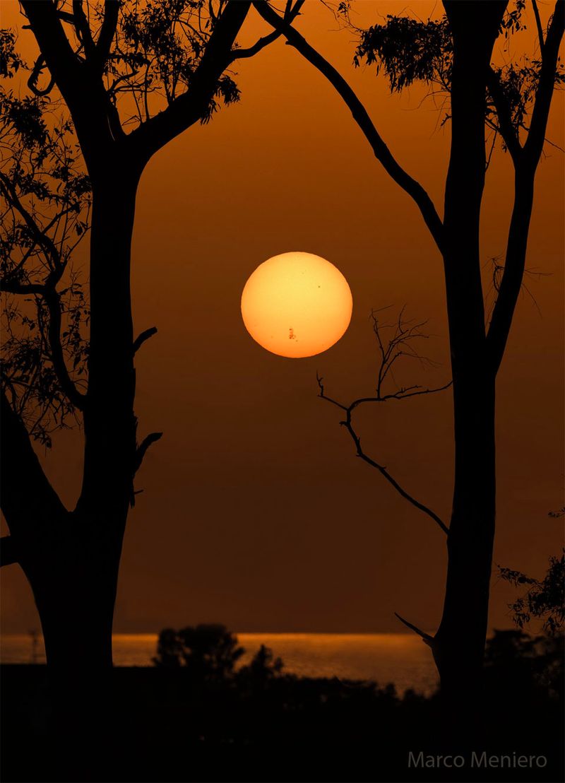 It was larger than the Earth. It was so big you could actually see it on the Sun's surface without magnification. It contained powerful and tangled magnetic fields as well as numerous dark sunspots. Labelled AR 3664, it developed into one of the most energetic areas seen on the Sun in recent years, unleashing a series of explosions that led to a surge of energetic particles striking the Earth, which created beautiful auroras. And might continue. Although active regions on the Sun like AR 3664 can be quite dangerous, this region's Coronal Mass Ejections have not done, as yet, much damage to Earth-orbiting satellites or Earth-surface electrical grids. Pictured, the enormous active region was captured on the setting Sun a few days ago from Civitavecchia, Rome, Italy. The composite image includes a very short exposure taken of just the Sun's surface, but mimics what was actually visible. Finally, AR 3664 is now rotating away from the Earth, although the region may survive long enough to come around again. Gallery: Earth Aurora from Solar Active Region 3664