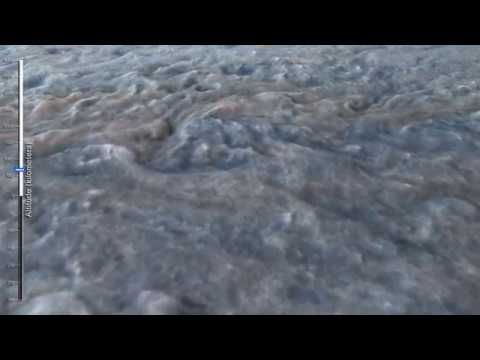 Take this simulated plunge and dive into the upper atmosphere of Jupiter, the Solar System's ruling gas giant. The awesome animation is based on image data from JunoCam, and the microwave radiometer on board the Jupiter-orbiting Juno spacecraft. Your view will start about 3,000 kilometers above the southern Jovian cloud tops, and you can track your progress on the display at the left. As altitude decreases, temperature increases while you dive deeper at the location of Jupiter's famous Great Red Spot. In fact, Juno data indicates the Great Red Spot, the Solar System's largest storm system, penetrates some 300 kilometers into the giant planet's atmosphere. For comparison, the deepest point for planet Earth's oceans is just under 11 kilometers down. Don't worry though, you'll fly back out again. Dive into the Universe: Random APOD Generator