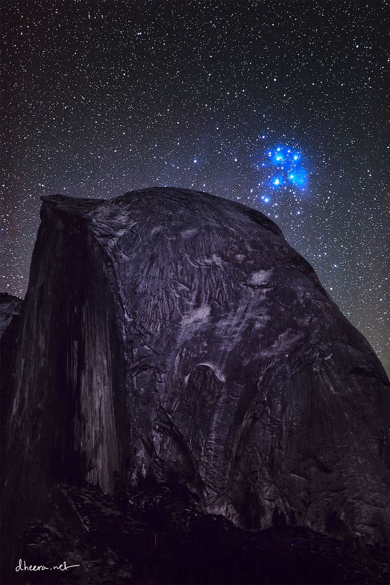 Stars come in bunches. The most famous bunch of stars on the sky is the Pleiades, a bright cluster that can be easily seen with the unaided eye. The Pleiades lies only about 450 light years away, formed about 100 million years ago, and will likely last about another 250 million years. Our Sun was likely born in a star cluster, but now, being about 4.5 billion years old, its stellar birth companions have long since dispersed. The Pleiades star cluster is pictured over Half Dome, a famous rock structure in Yosemite National Park in California, USA. The featured image is a composite of 28 foreground exposures and 174 images of the stellar background, all taken from the same location and by the same camera on the same night in October 2019. After calculating the timing of a future juxtaposition of the Pleiades and Half Dome, the astrophotographer was unexpectedly rewarded by an electrical blackout, making the background sky unusually dark. Astrophysicists: Browse 3,500+ codes in the Astrophysics Source Code Library