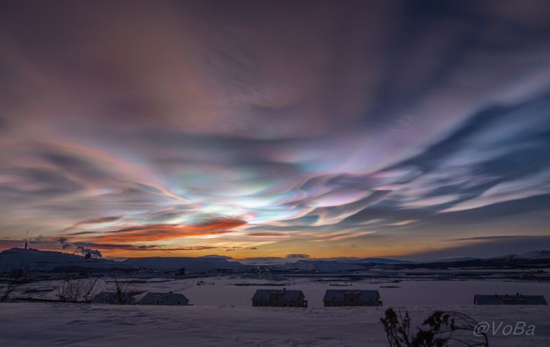 Vivid and lustrous, wafting iridescent waves of color wash across this skyscape from northern Sweden. Known as nacreous clouds or mother-of-pearl clouds, they are rare. But their unforgettable appearance was captured in this snapshot on January 12 with the Sun just below the local horizon. A type of polar stratospheric cloud, they form when unusually cold temperatures in the usually cloudless lower stratosphere form ice crystals. Still sunlit at altitudes of around 15 to 25 kilometers, the clouds diffract the sunlight even when the Sun itself is hidden from direct view.