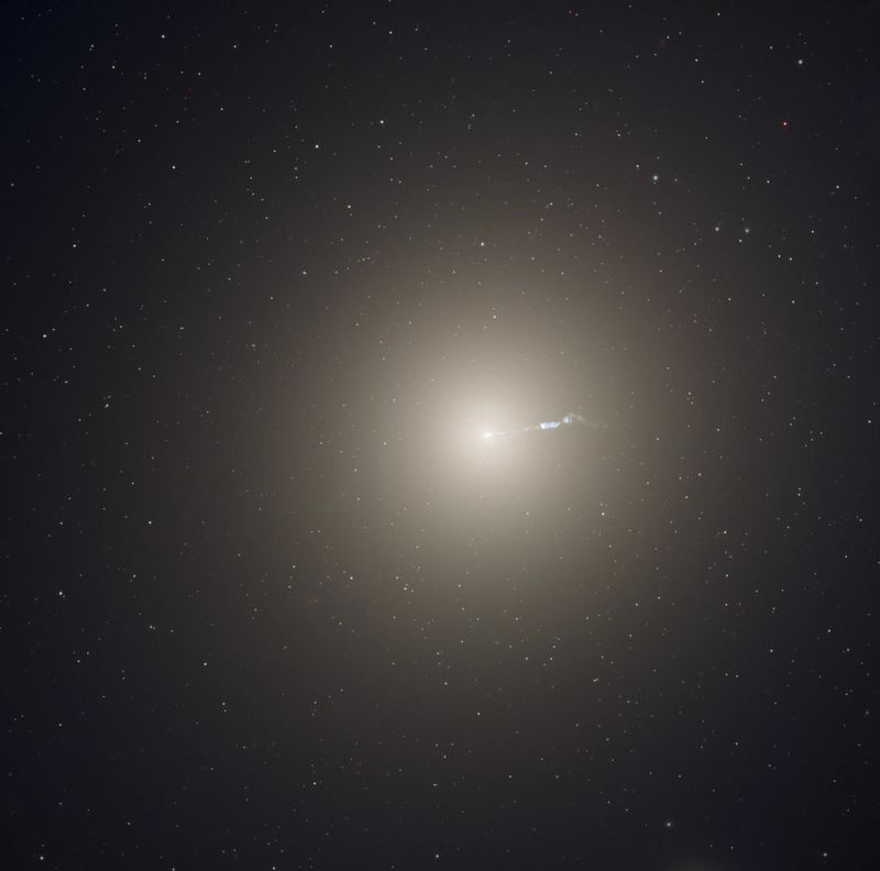 rmous elliptical galaxy Messier 87 is about 50 million light-years away. Also known as NGC 4486, the giant galaxy holds trillions of stars compared to the mere billions of stars in our large spiral Milky Way. M87 reigns as the large central elliptical galaxy in the Virgo galaxy cluster. An energetic jet from the giant galaxy's core is seen to stretch outward for about 5,000 light-years in this sharp optical and near-infrared view from the Hubble Space Telescope. In fact, the cosmic blow torch is seen across the electromagnetic spectrum from gamma-rays to radio wavelengths. Its ultimate power source is M87's central, supermassive black hole. An image of this monster in the middle of M87 has been captured by planet Earth's Event Horizon Telescope.